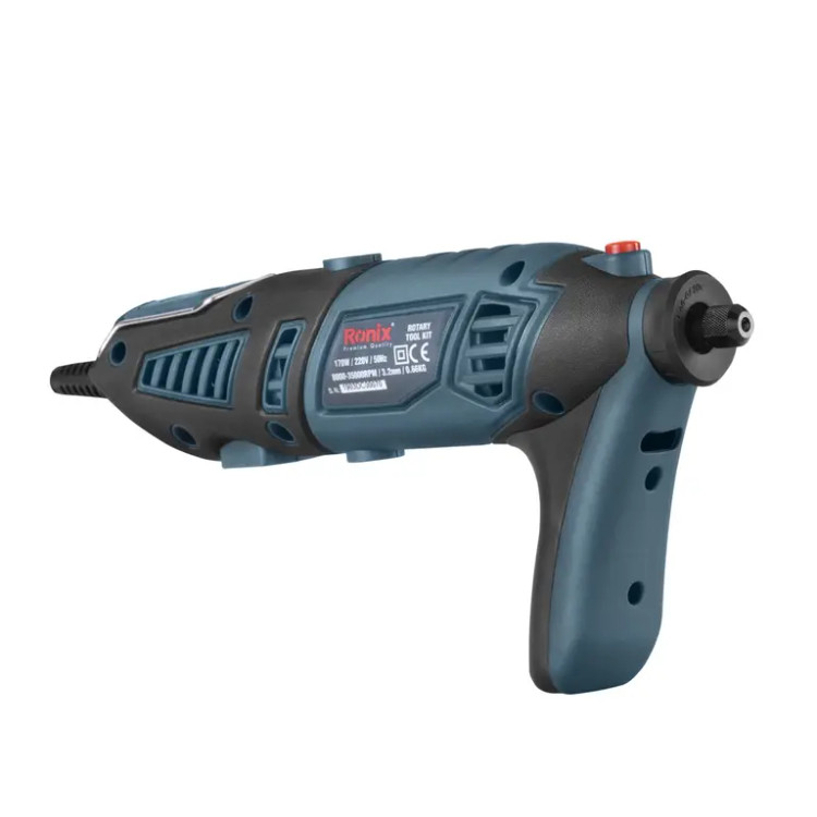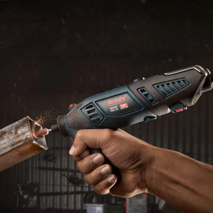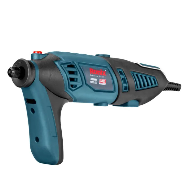 فرز مینیاتوری 3401 رونیکس، به یک موتور قدرتمند 170 وات مجهز است. این دستگاه، از سیستم تغییر دور دیجیتال و بورد الکتریکی مقاوم بهره میبرد. سرعت موتور با کلیدهای مثبت و منفی دیمر در محدوده 8000 تا 35000 دور در دقیقه تنظیم میشود. طراحی ابزار ارگونومیک بوده و با برخورداری از دسته جانبی، قدرت مانور بالاتری را به شما میبخشد تا به صورت ثابت نیز بتوانید از آن در مصارف بلندمدت استفاده کنید. ابتدا و انتهای 3401 با روکش سیلیکونی پوشانده شده است.