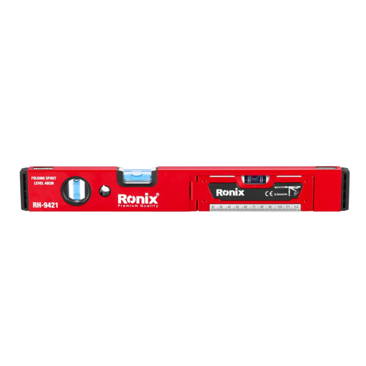 تراز بنایی تاشو 40 سانتیمتری رونیکس مدل RH-9421 ابزاری کاربردی و دقیق برای ترازکردن سطوح مختلف است. بدنه این ابزار تراز بنایی از آلومینیوم ساخته شده است که در عین سبکی، تسلط و ایمنی کاربر را تضمین میکند. همچنین پوشش پلاستیکی پروفیلها از تراز در برابر آسیبهای احتمالی محافظت میکند. سطح تاشو چندمنظوره این تراز بنایی رونیکس برای نجاری، دکوراسیون و... کاربرد زیادی دارد.