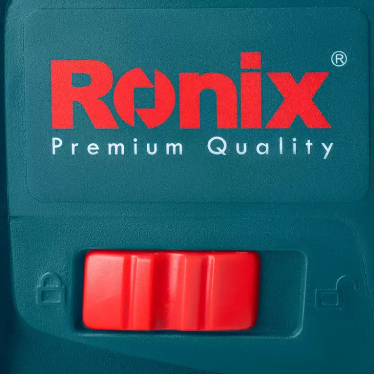 قفل پاندول در تراز لیزری RH-9504 رونیکس برای محافظت از سیستم لیزر دستگاه در حین حرکت و جابهجایی تعبیه شده است. این ابزار با درجه حفاظت بینالمللی IP54 ساخته شده و مقاوم به گردوغبار است.