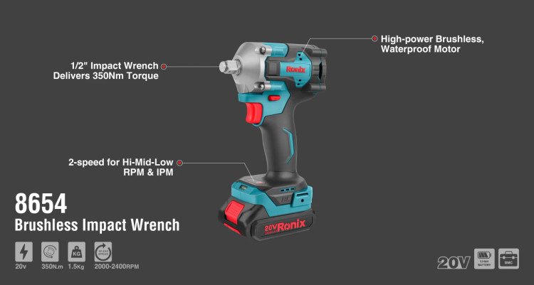 وزن سبک، بدنه ارگونومیک و ضد شوک و وجود دسته لاستیکی، باعث راحتی بیشتر کاربر و انتقال بهتر نیرو میشود. 8654 با دو حالت سرعت قابل تنظیم، امکان انجام طیف متنوعی از کارها را فراهم میکند. همچنین، مجهز به چراغ LED برای کار در محیطهای کمنور است. از دیگر ویژگیهای متمایز این ابزار میتوان به سیستم توقف خودکار هنگام بازکردن پیچ اشاره کرد که از آسیب به قطعات جلوگیری میکند.
