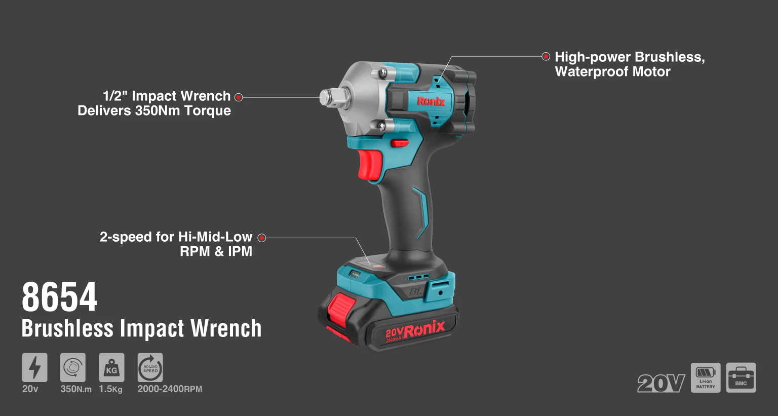آچار بکس شارژی 20 ولت رونیکس مدل 8654، ابزار شارژی حرفهای با عملکرد بالا و طراحی صنعتی است که برای کاربران تخصصی طراحی شده است. این بکس شارژی با گشتاور 350 نیوتنمتری، قدرت لازم را برای باز و بستهکردن انواع پیچ و مهره در پروژههای مختلف فراهم میکند.