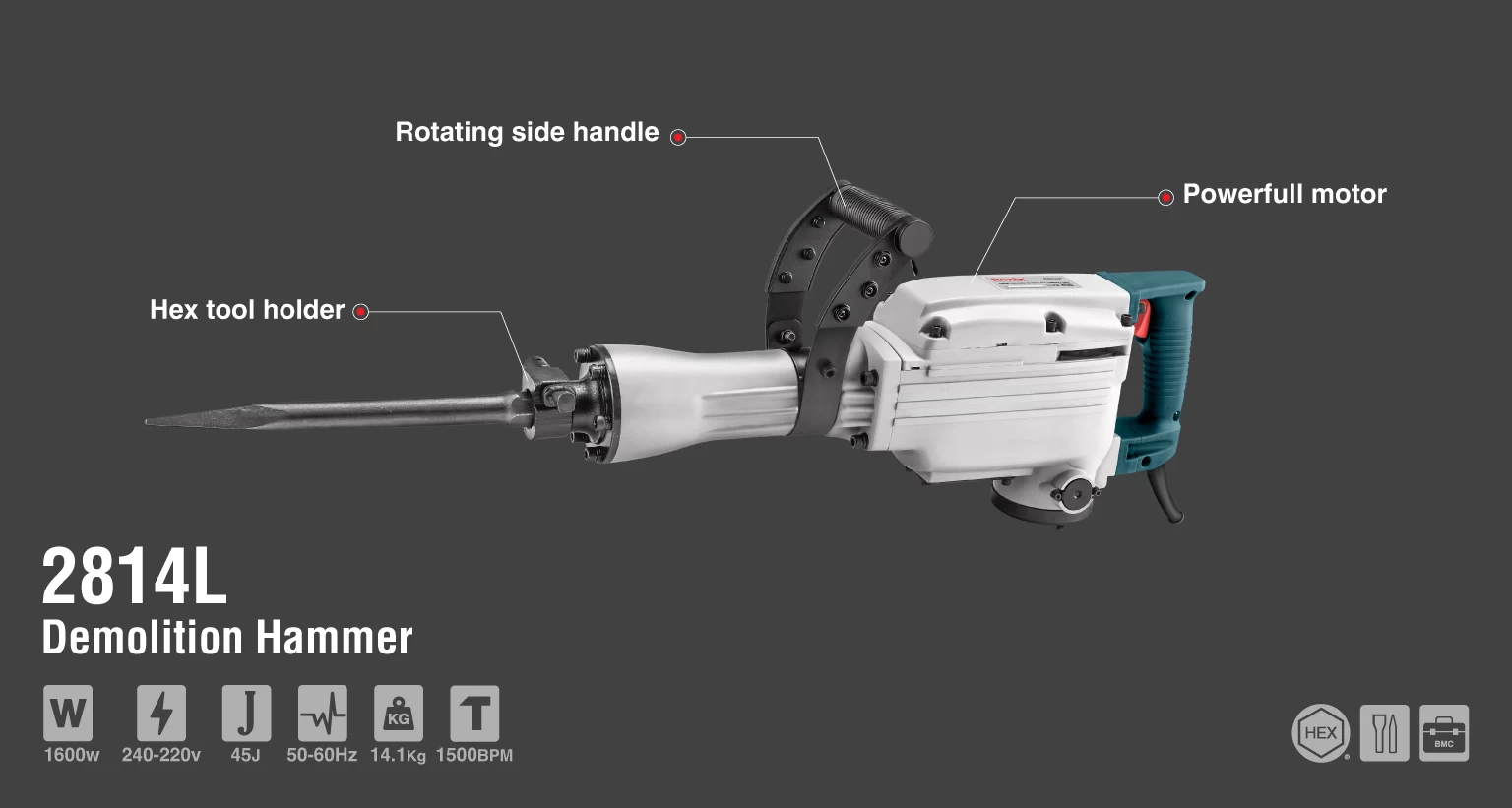 - مجهز به موتور 1600 واتی با توان ضربه 45 ژول با عملکرد عالی برای تمامی عملکرد ها