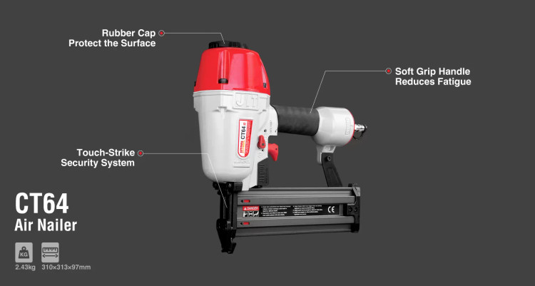 با میخکوب بادی CT64 جیت بیوقفه قطعات مختلف را میخکوبی کنید. این دستگاه در مشاغل مختلف مانند کارگاههای نجاری، مبلسازی، کابینتسازی و ...، سرعت و دقت میخکوبی در قطعات مختلف را به حداکثر میرساند.