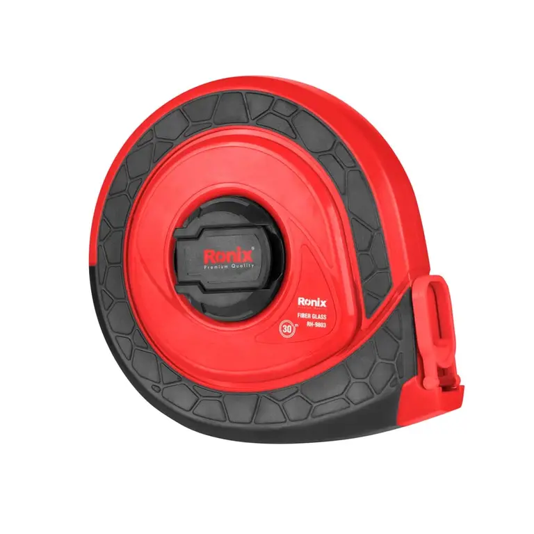 متر RH-9803 رونیکس مجهز به بدنه ای مقاوم در برابر ضربه است. نوار 30 متری این متر از جنس فایبرگلاس است که وزن آن را به طرز چشمگیری کاهش داده است و موجب شده است از مقاومت بالایی برخوردار شود. این متر مجهز به بدنه مقاوم و ضد ضربه است که در برابر آسیب های ناشی از ضربات وارد شده مقاوم است. واحد اندازهگیری طول در این متر برحسب سانتی متر است و در هر دو سمت نوار چاپ شده است. این نوار با روکش PVC به منظور افزایش دوام و نیز قابلیت شستشو پوشیده شده است.