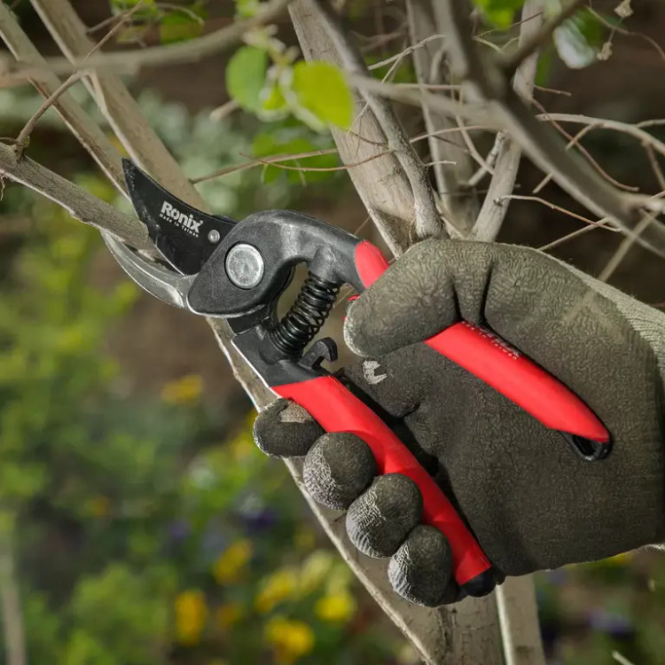 قیچی باغبانی فلورا رونیکس مدل RH-3105، ابزاری حرفهای برای هرس شاخ و برگ درختان است. این ابزار باغبانی مجهز به تیغههای سختکاریشده فولاد SK-5با درصد کربن بالا، مقاوم به زنگزدگی و روکش ضد چسبندگی است که برای برشهای آسان طراحی شدهاند. برای این قیچی باغبانی یک فنر مقاوم و در عین حال نرم تعبیه شده که پس از هر برش، لبههای قیچی را از هم باز میکند تا خستگی دست کاربر را به حداقل برساند.