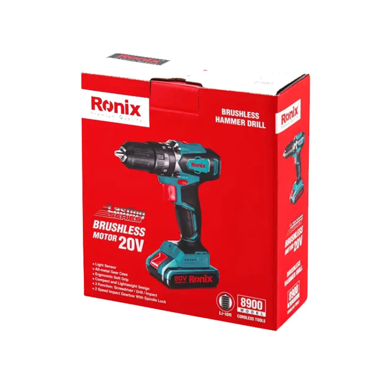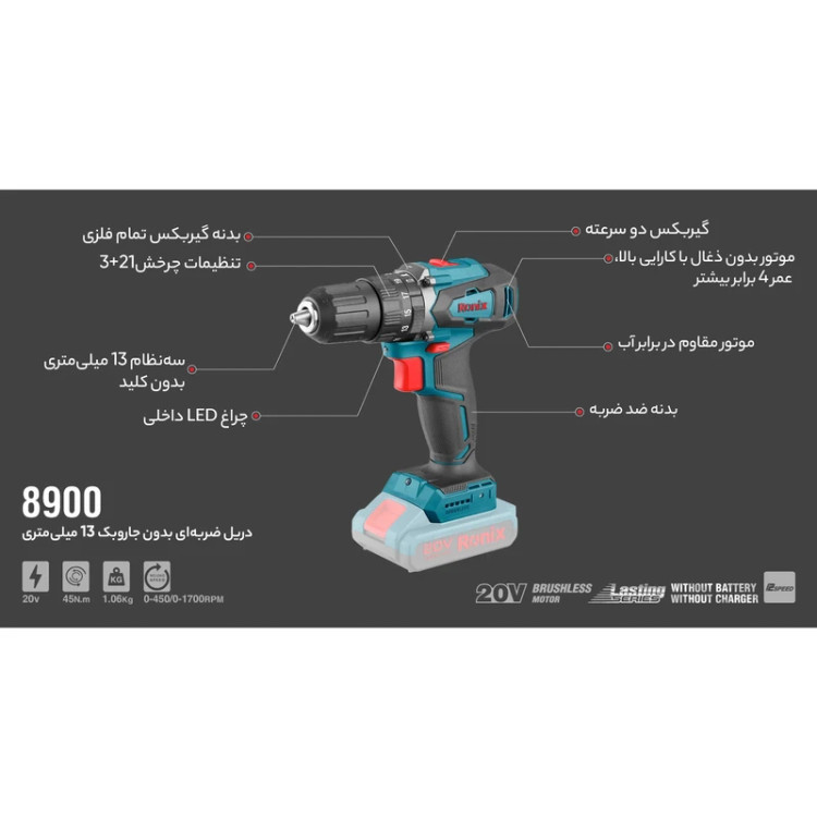 دریل پیچ گوشتی شارژی 20 ولت براش لس رونیکس مدل 8900 همراه با گارانتی 12 ماهه شرکت رونیکس