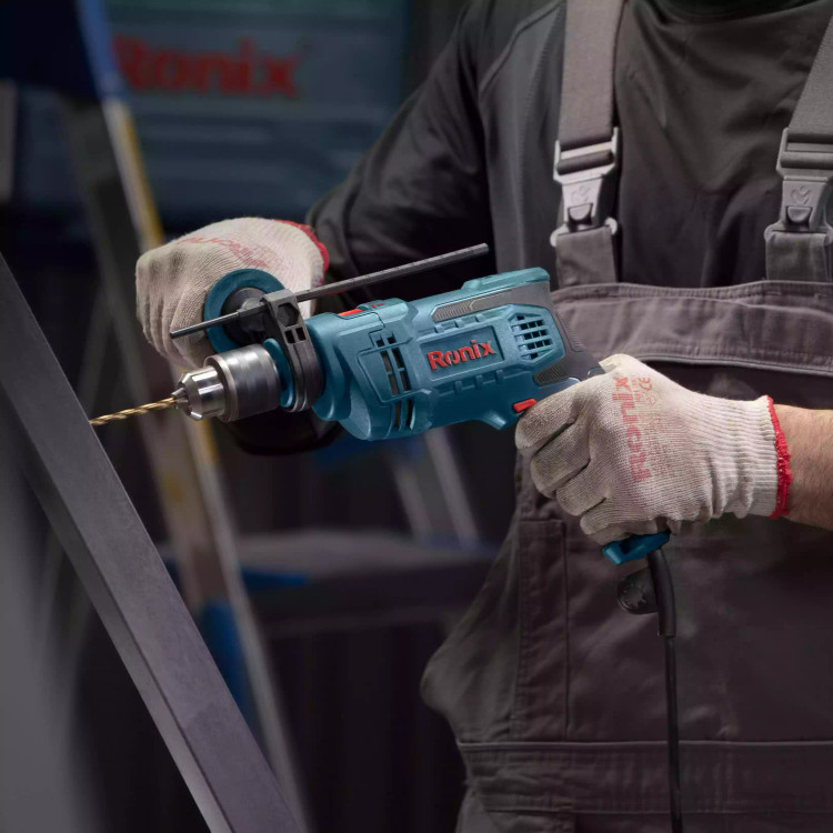 کیت دریل چکشی 2214K رونیکس، مجهز به موتور قدرتمند 750 وات است و استقامت بالایی را در شرایط پرفشار و فعالیتهای سنگین صنعتی نشان میدهد. سه نظام آچاری 13 میلیمتری این دریل، تمام فلزی و بسیار مقاوم ساخته شده و کار بر روی سطوح بسیار سخت و متراکم را امکانپذیر میکند. این سهنظام قدرتمند، مته را محکم سر جای خود نگهمیدارد و بدون کمترین انحراف، با سرعت به گردش درمیآورد.