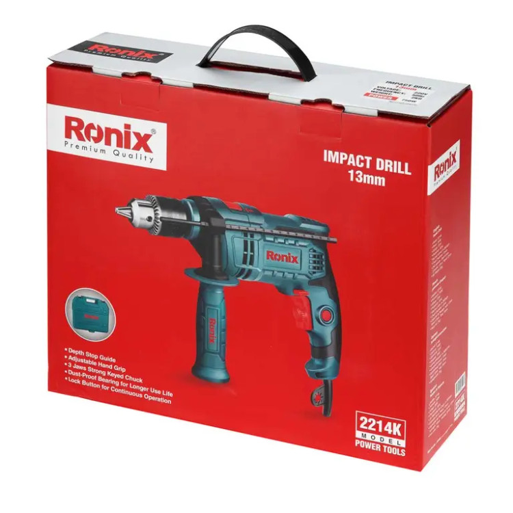 کیت دریل چکشی 13 میلی متر 750 وات رونیکس مدل 2214K همراه با گارانتی 12 ماهه شرکت رونیکس