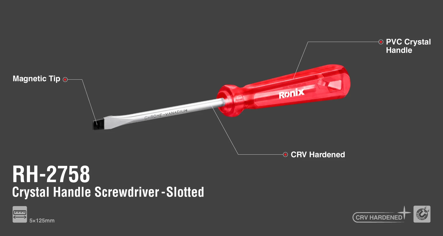 با ما همراه باشید و با مشخصات پیچ گوشتی تکی دسته کریستال تکرنگ RH-2758 رونیکس بیشتر آشنا شوید.