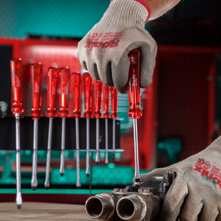 فرقی نمیکند که مشغول ساخت میز در کارگاه نجاری خود باشید یا پیچ یک تابلو را روی دیوار خانه سفت کنید. در هر صورت، به پیچ گوشتی نیاز پیدا میکنید. پیچ گوشتیهای دستی رونیکس با انواع سری، سایزهای مختلف میله، طراحی و جنس متفاوت دسته، به صورت تکی یا مجموعه ساخته شده و به بازار عرضه میشوند. رونیکس در طراحی و ساخت انواع پیچ گوشتی دستی، مانند سایر ابزارآلات خود، نهایت کیفیت و دقت را به کار گرفته و محصولات خود را مطابق نیازهای مختلف کاربران تولید میکند. طراحی ارگونومیک دسته، جنس و سایز میله، نوع سری یا نوک پیچ گوشتی، از عوامل بسیار مهم در انتخاب این ابزار پرکاربرد هستند.