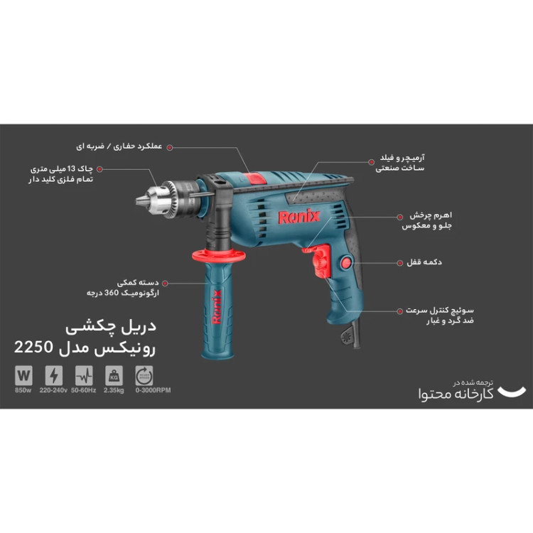 دریل چکشی 13میلیمتری رونیکس مدل 2250 همراه با گارانتی 12 ماهه شرکت رونیکس
