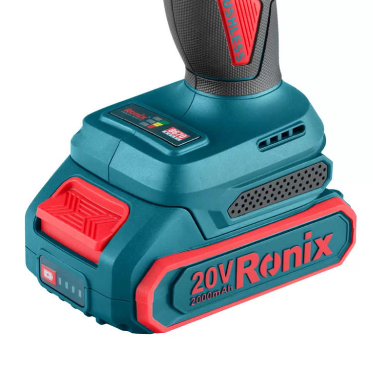 دریل پیچ گوشتی چکشی شارژی براش لس 20 ولت رونیکس مدل 8670 همراه با گارانتی 12 ماهه شرکت رونیکس