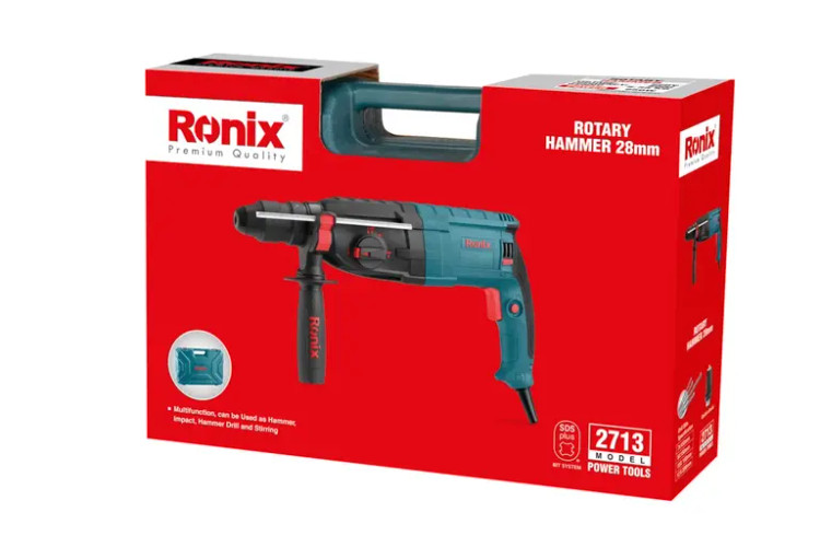 دریل بتنکن 2713 رونیکس، مطابق با استانداردهای روز دنیا تولید میشود. بدنه صنعتی و مقاوم در کنار طراحی ارگونومیک این ابزار، کار با آن را راحتتر میکند. این ابزار برقی قدرتمند، از یک موتور گیربکسی 850 وات بهره میبرد که سرعتی بالغ بر 1280 دور بر دقیقه را ایجاد کرده و نرخ ضربه آن BPM 5500 است.